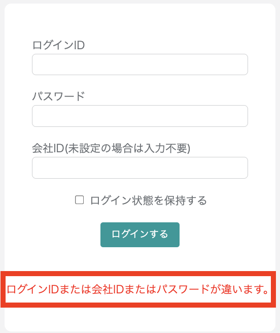 2)「ログインIDまたは会社IDまたはパスワードが違います」と表示される
